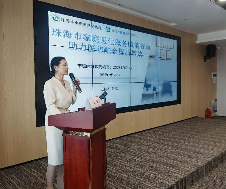 珠海市基层卫生协会会长艾艳就《关于珠海市家庭医生服务赋能行动助力医防融合提质增效》做主题分享。