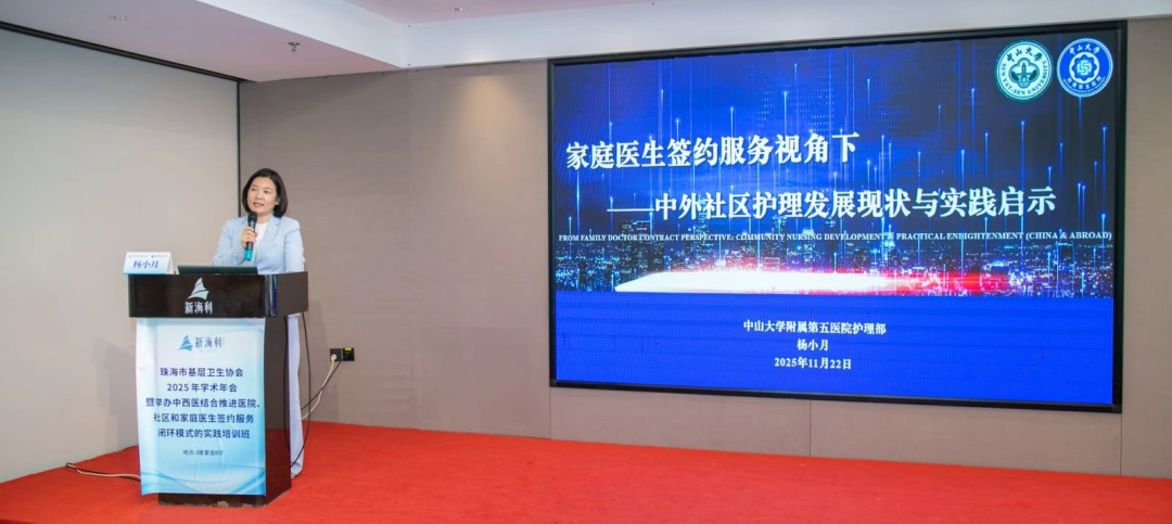本次会议的核心是精彩纷呈的学术报告,在首日主会场,广东药科大学赵昌林教授率先开讲,深入浅出地阐述了中医适宜技术在基层的推广策略;珠海市中西医结合医院拱北社康中心主任艾艳结合实践,系统介绍了中西医结合实现健康管理闭环的创新模式;中山大学附属第五医院护理部主任杨小月则从中外对比视角,为家庭医生签约服务下的社区护理发展提供了宝贵启示。